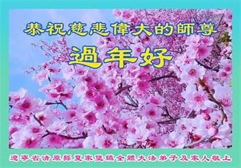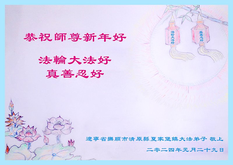 在新年之际,我们大法弟子恭祝师尊新年快乐!师尊辛苦了!您的大法弟子永远跟您走。 辽宁省清原县一大法弟子敬上 辽宁省抚顺市清原县夏家堡镇全体大法弟子及家人恭祝师尊过年好!感恩师尊慈悲救度!