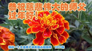 我们小组全体大法弟子非常想念您!我们一定在正法的最后阶段,多学法、学好法。彻底改变人的观念。舍尽人心、执着。修好自己,多救人,完成大法徒的使命,跟师父回家。 辽宁四名大法弟子恭祝慈悲伟大的师尊过年好!