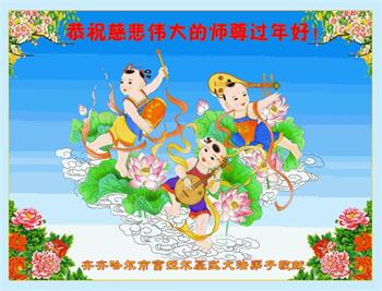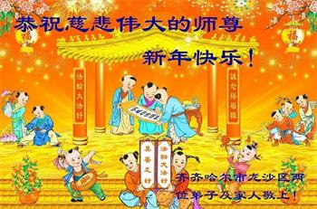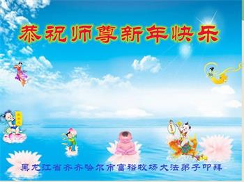 恭祝慈悲伟大的师尊新年快乐! 黑龙江省齐齐哈尔市龙沙区一学法小组 黑龙江省齐齐哈尔大法弟子恭祝师父过年好!