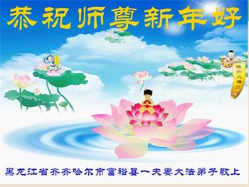 黑龙江省齐齐哈尔市富裕县一夫妻大法弟子恭祝师尊新年好!