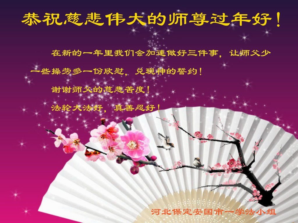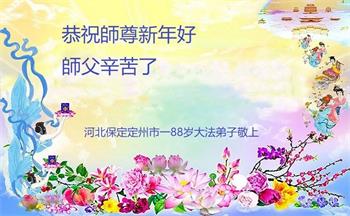 师父,您辛苦了!弟子给师父拜年,恭祝师父过年好!感恩师父的慈悲苦度。谢谢师父。 河北省保定容城县一学法小组大法弟子敬上 河北保定市定州市一全家大法弟子恭祝师尊新年快乐!
