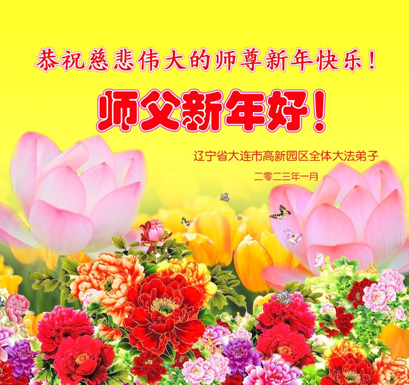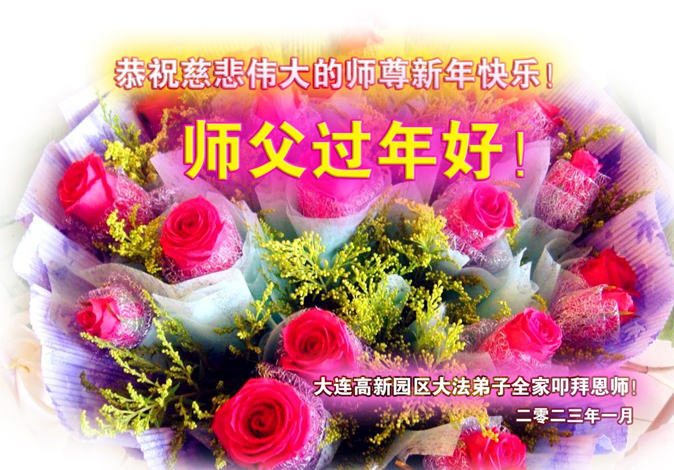 恭祝慈悲伟大的师尊新年快乐!师父新年好! 感谢师尊的巨大慈悲,感谢师尊的神圣恩典!我们一定紧跟师尊走,做好三件事,精進实修,救度众生。助师正法回天路,圆满随师把家还! 辽宁省大连市高新园区全体大法弟子敬上 二零二三年一月三十一日 辽宁省大连高新园区大法弟子全家恭祝慈悲伟大的师尊新年快乐!