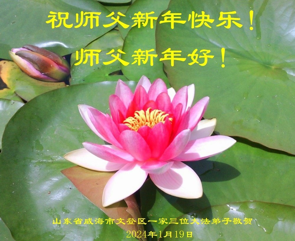 恭祝师尊新年快乐! 山东滨州全体大法弟子敬上 2024年2月1日 山东省威海市文登区一家三位大法弟子恭祝慈悲伟大的师尊新年好!