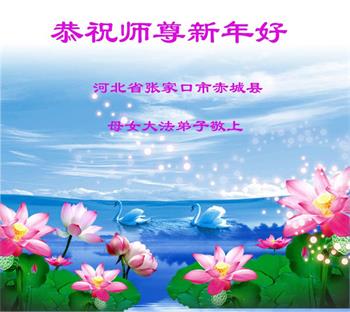 河北省张家口市赤城县母女大法弟子恭祝师尊新年快乐!