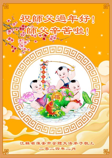 【明慧网二零二四年二月十日】 江苏省南京市溧水区一学法小组大法弟子恭祝慈悲伟大的师尊过年好!