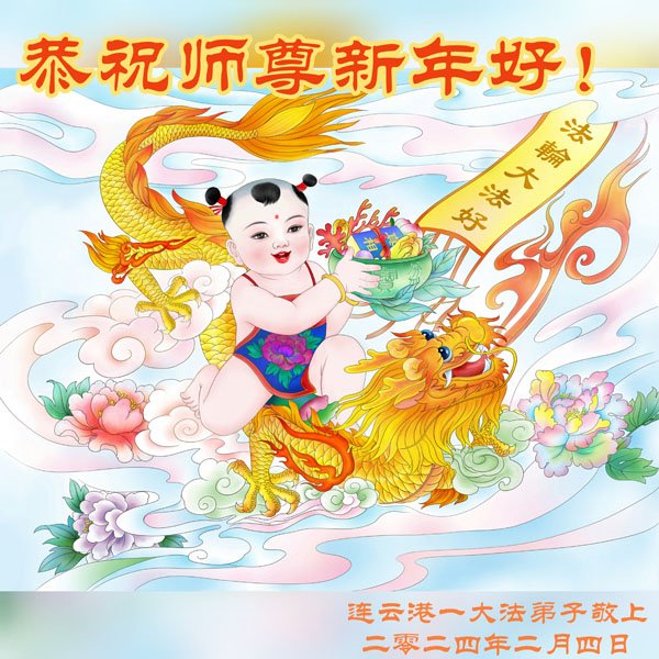 江苏连云港大法弟子全家恭祝慈悲伟大的师尊中国新年快乐!
