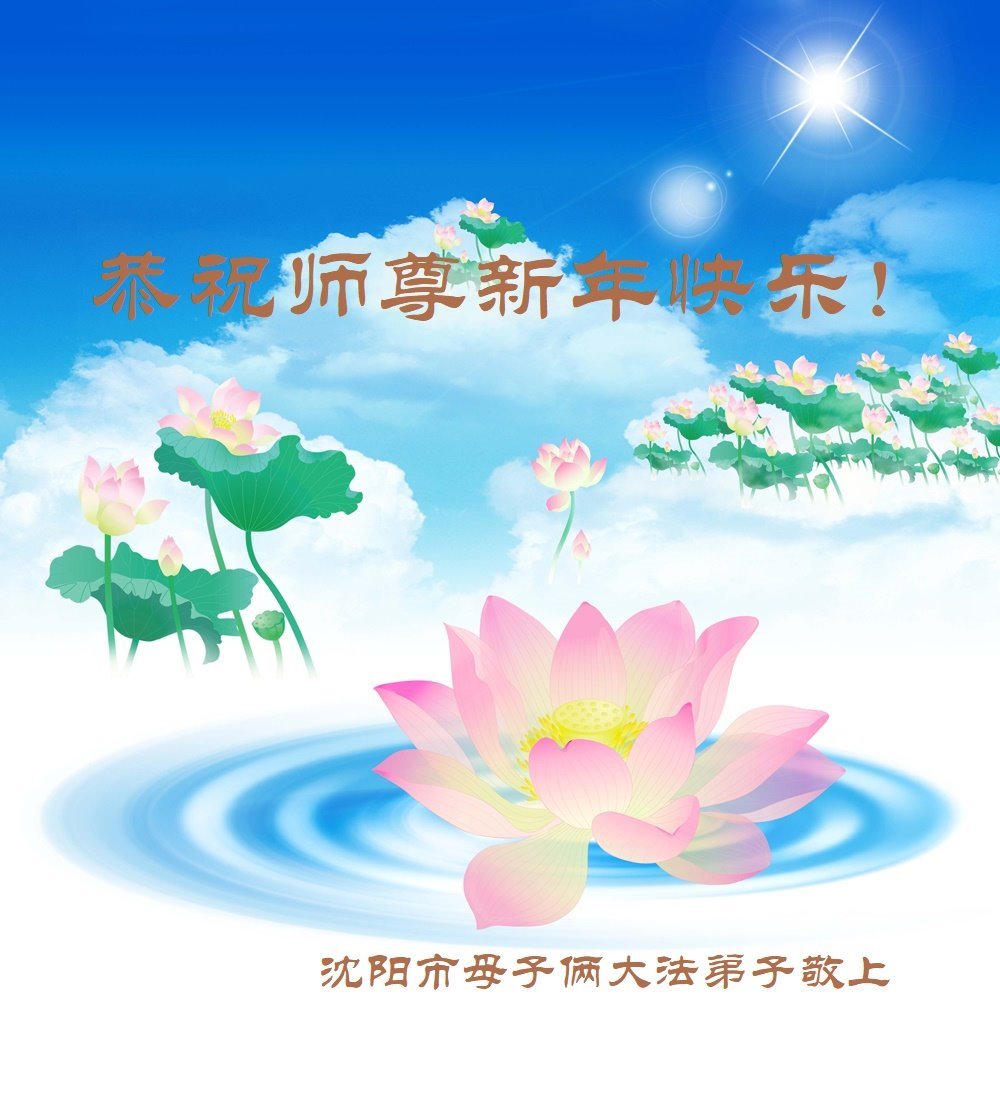 辽宁省沈阳市母子俩大法弟子恭祝师尊新年快乐!