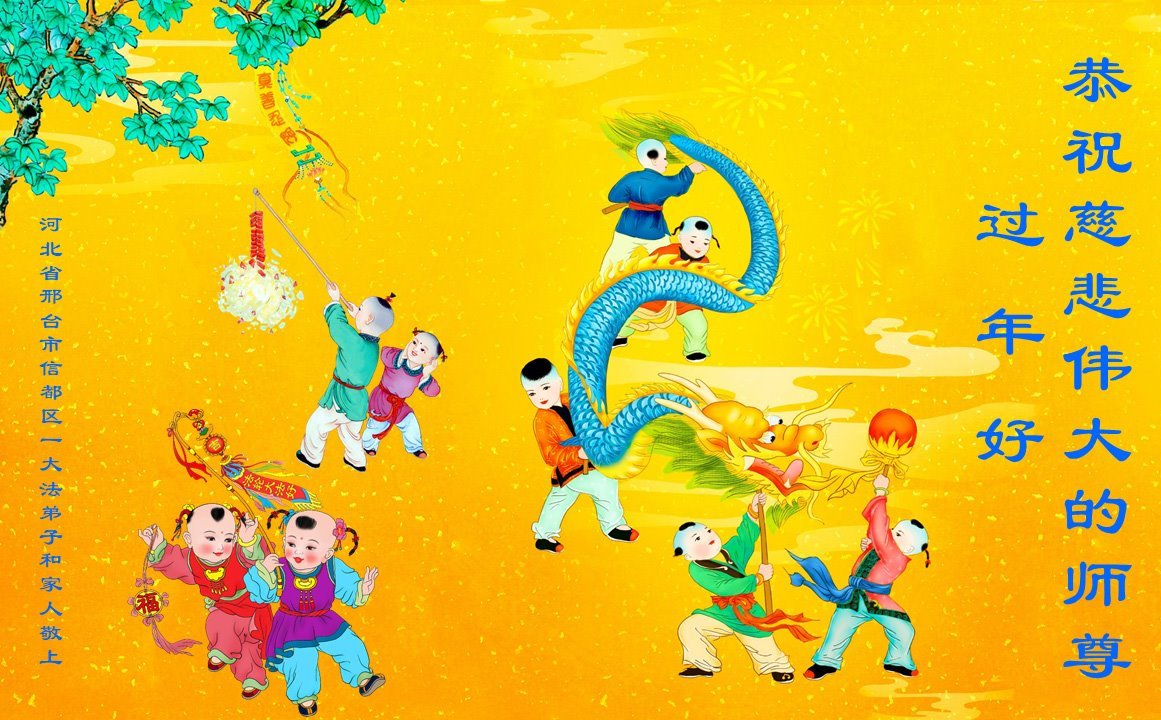 转眼又是一年,在这即将过去的一年里,弟子深知做的不足,让师父操心了。师父,弟子一定在所剩不多的时间里,牢记师尊教诲,修好自己,多救人,完成史前大愿,跟师尊回家。 河北宁晋一学法小组敬上 河北省衡水一学法小组大法弟子四人敬祝慈悲伟大的师尊新年快乐!
