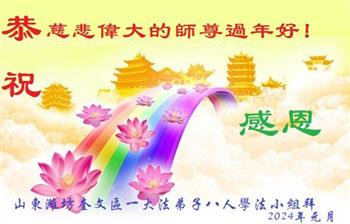 山东潍坊经开区一大法弟子学法小组大法弟子恭祝师尊过年好!