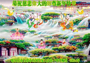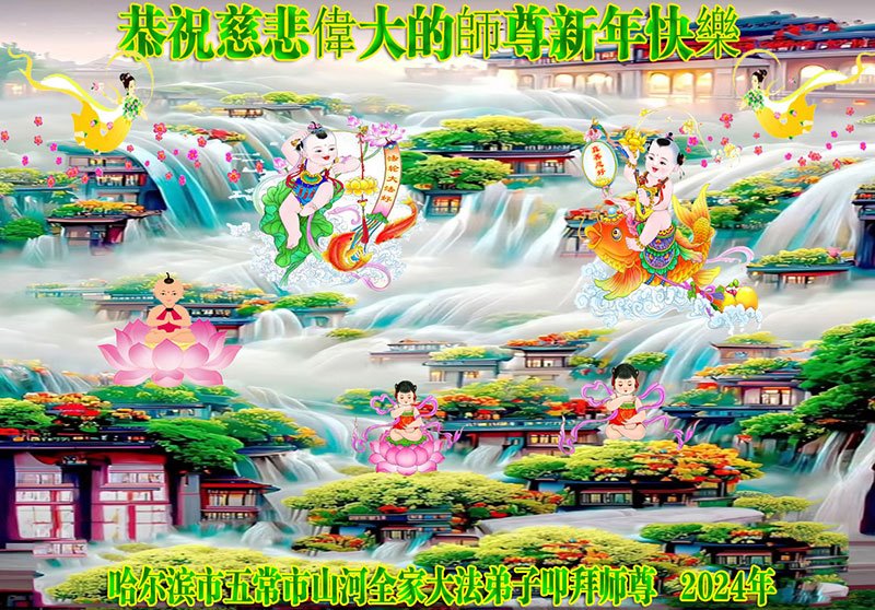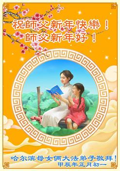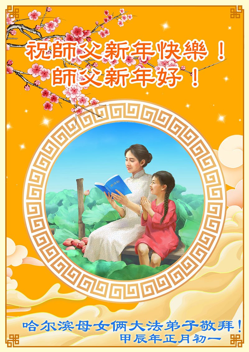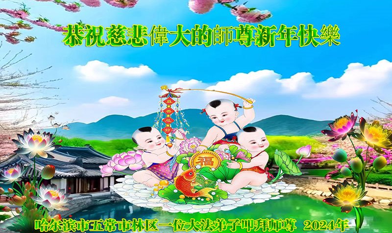 【明慧网二零二四年二月十日】 黑龙江哈尔滨市南岗区一老年大法弟子学法小组大法弟子恭祝师父新年快乐!