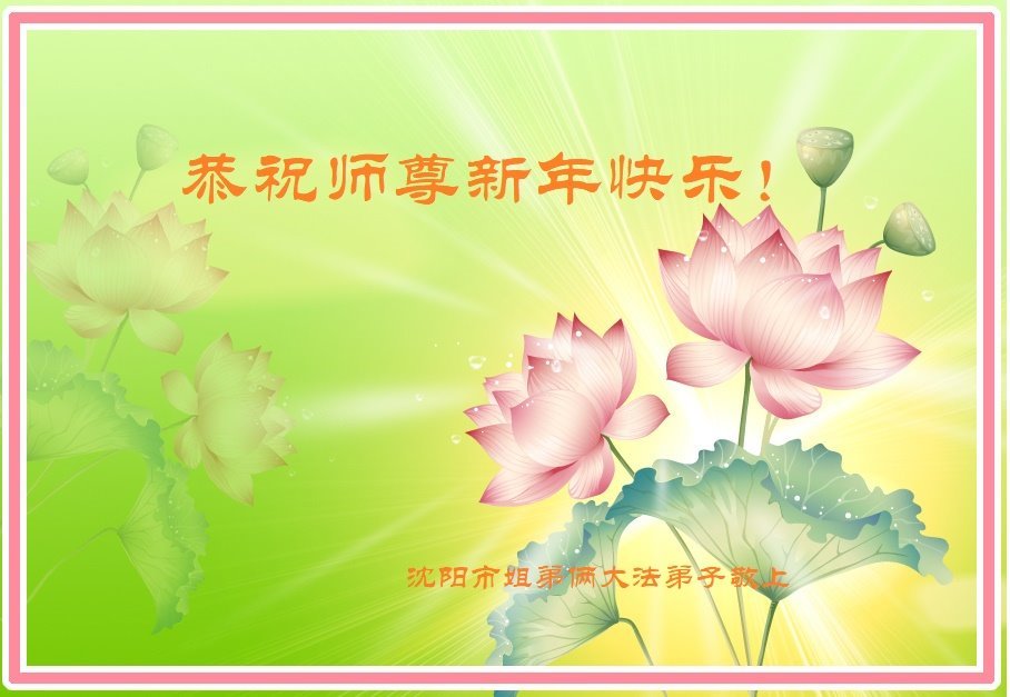 在新的一年里,弟子要实修自己,修去人心与执着,严格要求自己,不断纯净自身,达到真正修炼人的标准,用心做好三件事,以报师恩。 辽宁省沈阳市一学法小组大法弟子恭祝师父过年好!