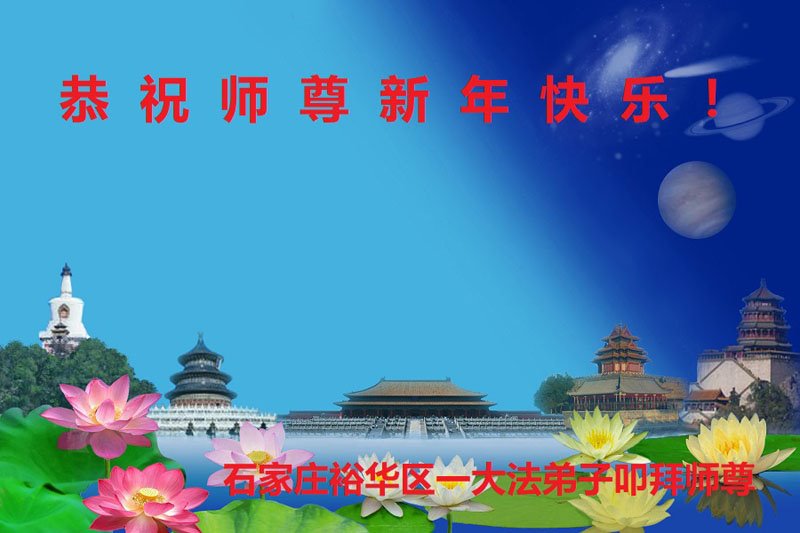 恭祝慈悲伟大的师尊过年好! 河北石家庄裕华区大法弟子敬上 河北石家庄新华区一学法小组大法弟子恭祝师尊新年快乐!