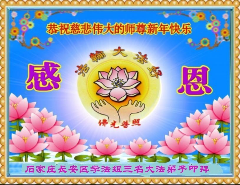 河北省石家庄长安区一学法组三名大法弟子恭祝师尊新年快乐!