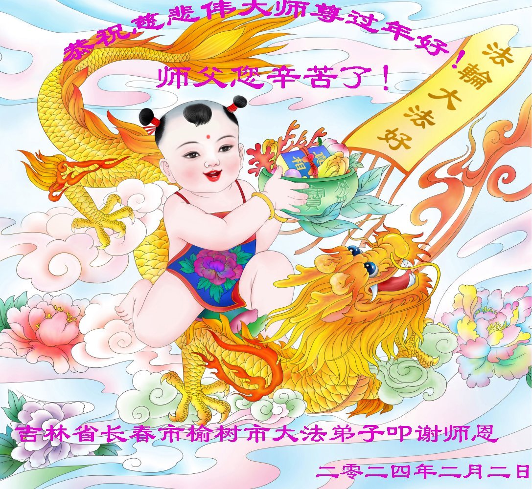 慈悲伟大的师尊 祝师尊中国新年好! 祝愿师尊新年快乐! 真善忍好,法轮大法好 中国大陆吉林省长春市德惠市大法徒 二零二四年二月二日 吉林省长春大法弟子恭贺祝慈悲伟大的师尊过年好!