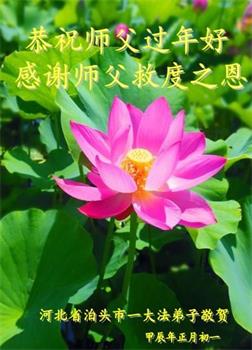 弟子在今后的日子里多学法,多救人,实修自己,做好三件事,圆满跟师父回家。 河北沧州泊头市一大法弟子恭祝师尊过年好!
