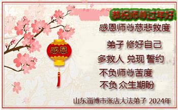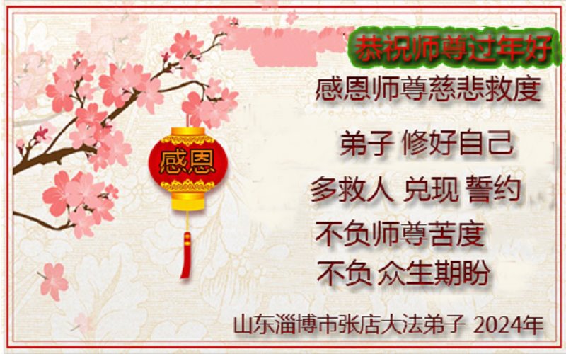 【明慧网二零二四年二月十日】 山东省威海市文登区一大法弟子学法组恭祝师尊过年好!