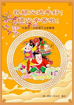 在新的一年里,弟子们要好好学法,做好三件事,自觉践行大法弟子的使命,圆满随师还。 大连市一大法弟子及女儿与妹妹大法弟子敬上 辽宁省大连市一大法弟子及儿子恭祝师父过年好!