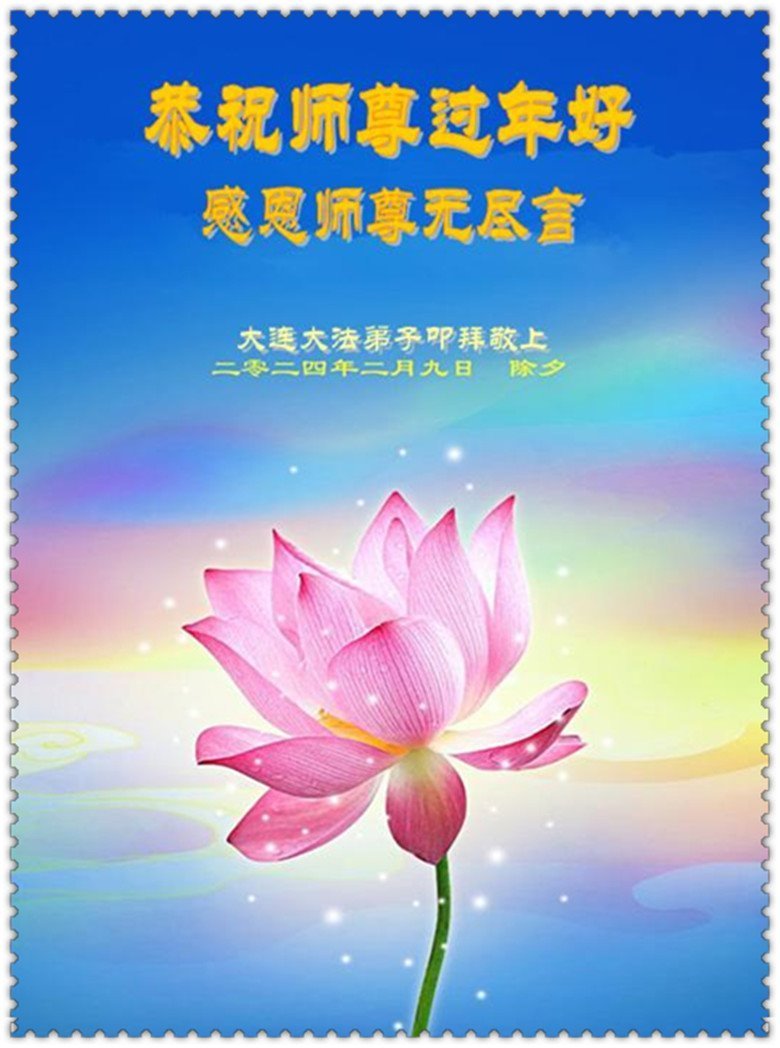 【明慧网二零二四年二月十日】 辽宁省大连市一大法弟子及家人恭祝师尊新年好!