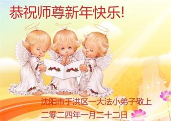 恭祝伟大慈悲的师尊过年好! 上海市虹口区母女大法弟子携十四周岁小弟子跪拜师尊救度洪恩! 上海虹口母女大法弟子携十四周岁大法小弟子敬上 二零二四年一月十七日 辽宁省沈阳市于洪区一大法小弟子恭祝师尊新年快乐!