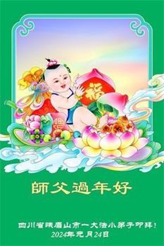 四川省峨眉山市一大法小弟子叩拜 二零二四年元月二十四日 辽宁省沈阳市一大法弟子与大法小弟子及明真相家人恭祝师尊过年好!