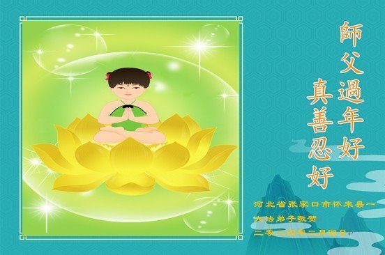 河北省张家口市怀来县大法弟子一家三口恭祝师尊过年好! 感谢师父的救度圣恩,只有做好三件事,才能跟师父回家,请师父放心! 河北省张家口市怀安县一大法弟子恭祝师尊新年快乐!