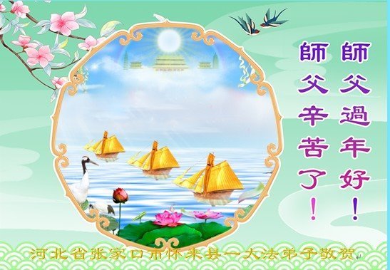 感恩师父慈悲救度!师父辛苦了! 河北省宣化区大法弟子一家三口人敬上 河北省张家口市一学法小组全体大法弟子恭祝师父新年快乐!
