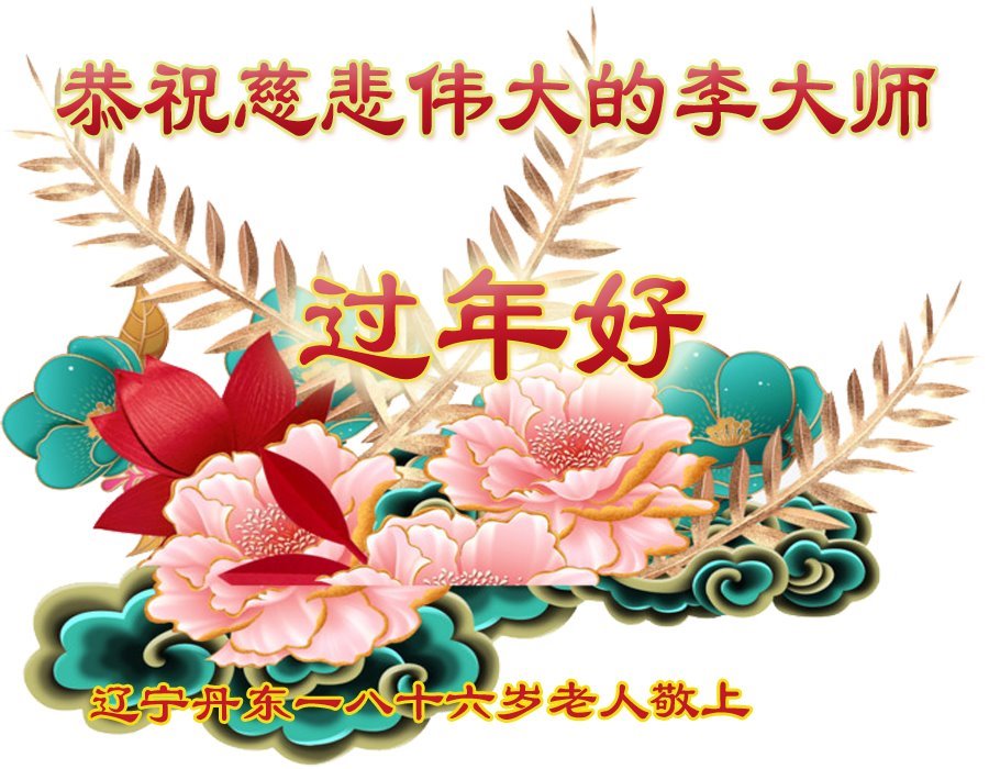 辽宁省丹东市一位86岁老人恭祝慈悲伟大的李大师过年好!