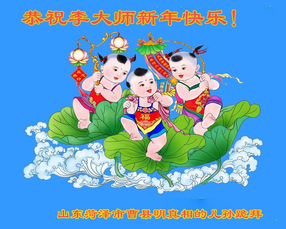 河北承德一家明真相的18位世人祝贺师父新年快乐! 河北承德一家明真相的18位世人敬上 二零二四年二月九日 除夕 山东省菏泽市曹县明白真相的一家儿孙恭祝李大师新年快乐!