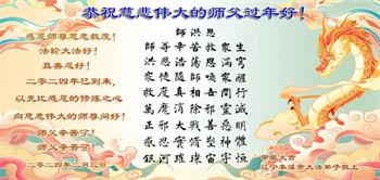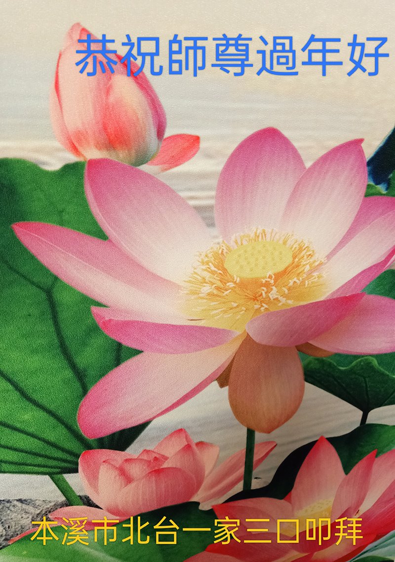 在今后的修炼路上,弟子要精進实修,做好三件事,一修到底,跟师父回家。 祝师尊新年快乐! 辽宁本溪五人学法小组大法弟子恭祝师父过年好!