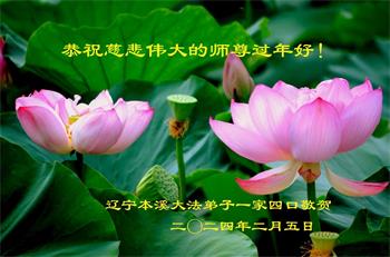 2024年2月4日 辽宁省本溪大法弟子一家三口恭祝师父新年好!