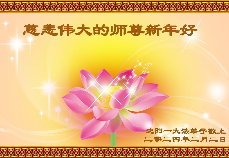 迎新宇 洪恩浩荡震天宇 九字真言记心里 师转法轮创新宇 改天换地众生喜 法徒随师救众归 普天同庆迎新宇 沈阳一大法弟子敬上 二零二四年二月二日 辽宁省沈阳市沈北新区虎石台地区一学法小组大法弟子恭祝师父过年好!