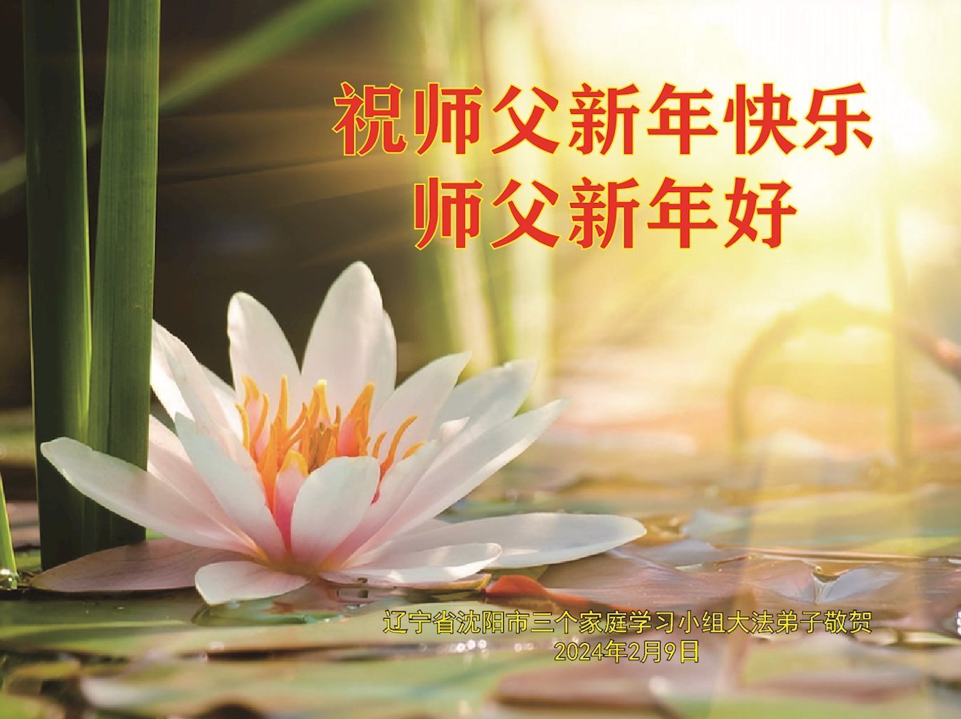 【明慧网二零二四年二月十日】 辽宁省沈阳市两个学法小组十二名大法弟子恭祝伟大的师尊中国新年快乐!