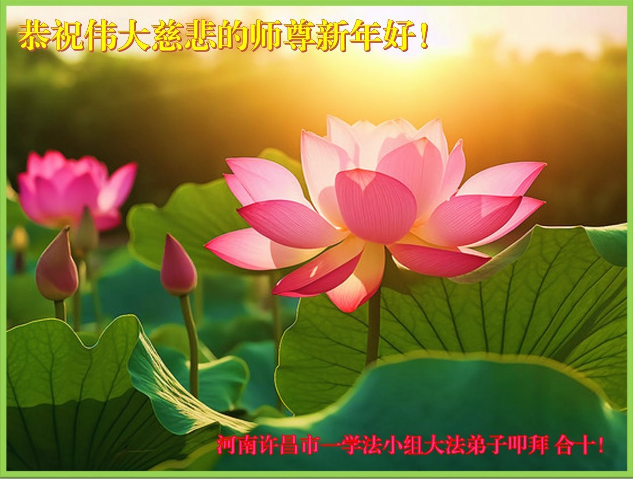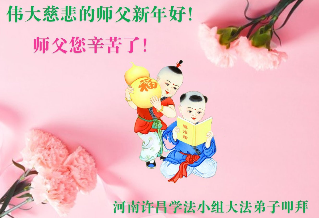 【明慧网二零二四年二月十日】 河南省许昌一小组大法弟子恭祝伟大慈悲的师尊新年好!师尊辛苦了!弟子给您拜年了!