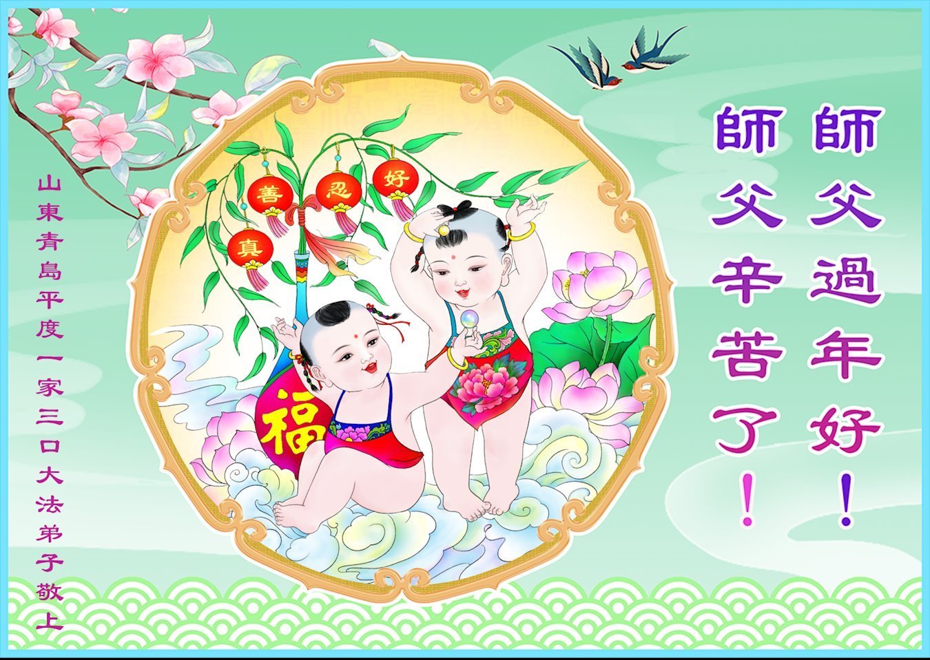 山东省青岛大法弟子及全家恭祝师尊新年快乐!感恩师尊的慈悲救度与保护!