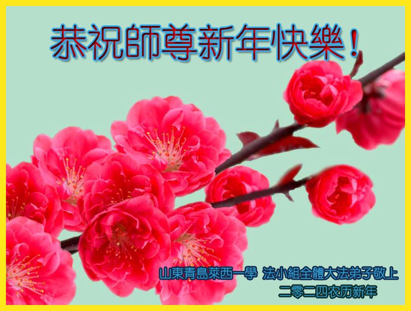 恭祝师父新年快乐! 弟子一定学好法,做好三件,跟师尊回家。 青岛市一学法小组大法弟子敬上 二零二四年二月四日 山东青岛大法弟子恭祝师父龙年新年快乐!