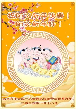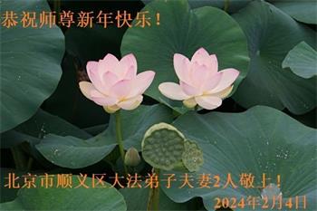 【明慧网二零二四年二月十日】 北京市顺义区夫妻俩大法弟子恭祝慈悲伟大的师父新年快乐!