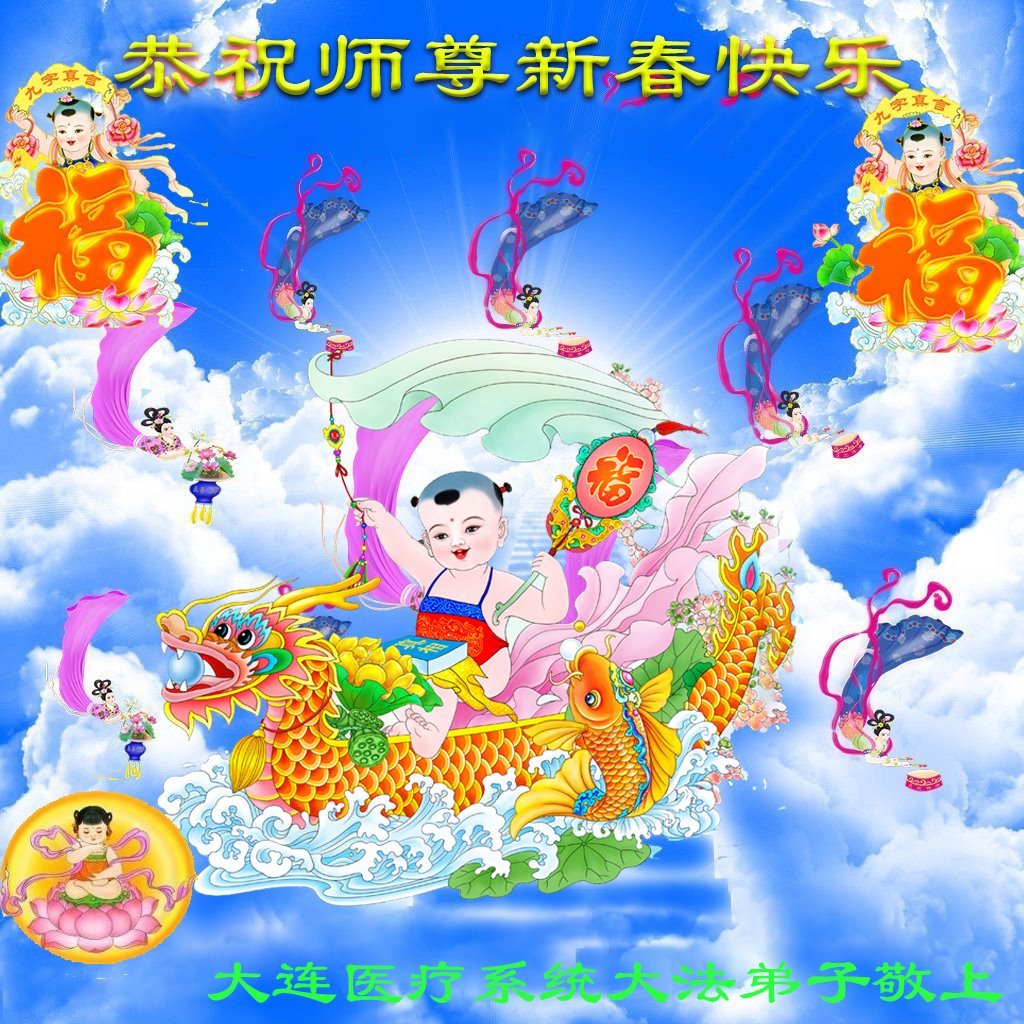 恭祝慈悲伟大的师尊新年快乐! 黑龙江农垦一大法弟子及家人敬上 辽宁省大连医疗系统大法弟子恭祝师尊新年快乐!