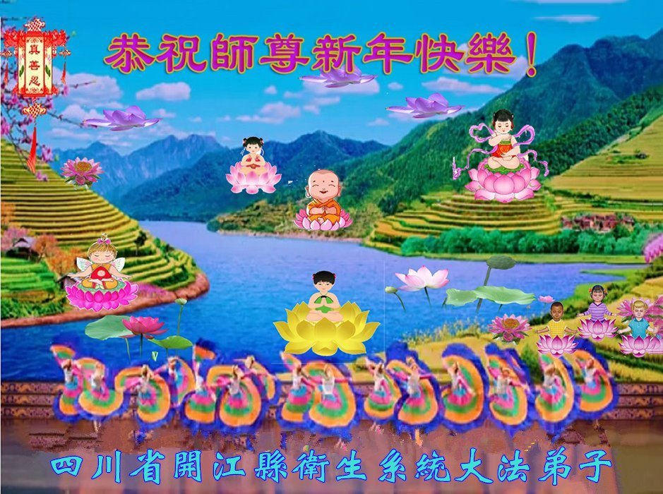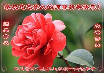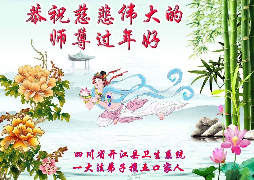 四川省达州市开江县卫生系统一大法弟子恭祝慈悲伟大的师尊新年快乐!