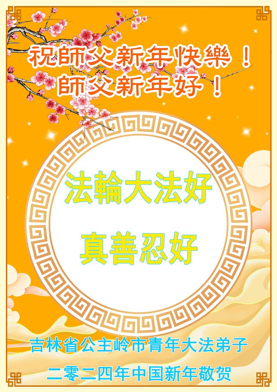 恭祝师父中国新年快乐! 法轮大法好!真善忍好!师父辛苦了! 吉林省公主岭市青年大法弟子敬上 二零二四年一月十七日 吉林省辽源市大法弟子恭祝慈悲伟大的师尊过年好!