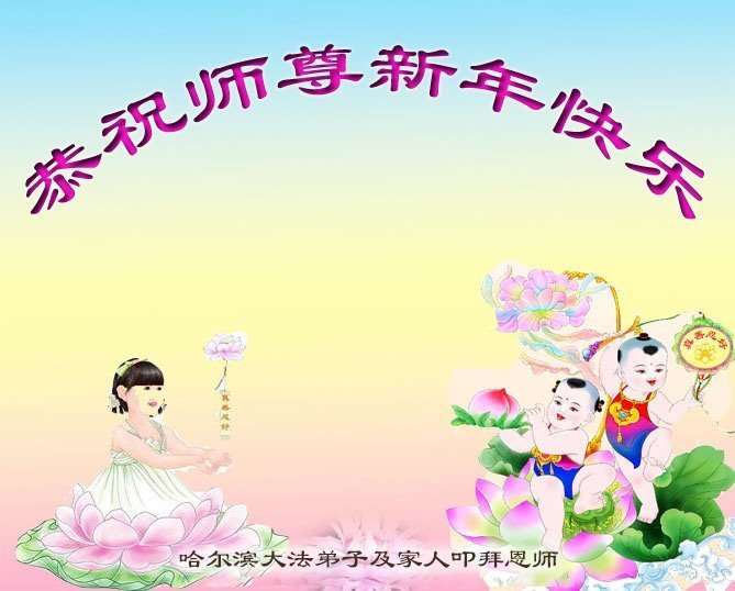 恭祝师尊新年快乐!师父辛苦了,弟子惟愿精進报师恩。 黑龙江省哈尔滨市大法弟子携家人敬上 黑龙江哈尔滨市大法弟子恭祝师尊新年好!