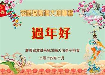 弟子一定精進,学好法,多救人,形成整体,让师尊放心。 广东省教育系统大法弟子恭祝慈悲伟大的师尊过年好!