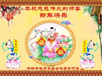 师尊新年快乐!师尊辛苦了! 合十 2024年2月6日 河北省邯郸市教育系统全体大法弟子恭祝慈悲伟大的师尊新年快乐!