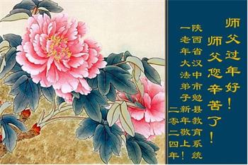 师父过年好!师父您辛苦了! 陕西省汉中市勉县教育系统一老年大法弟子新年敬上 陕西省汉中市教育系统大法弟子恭祝师尊新年快乐!