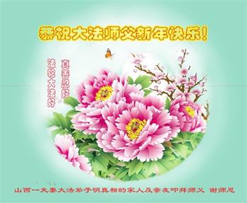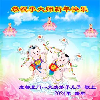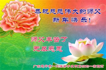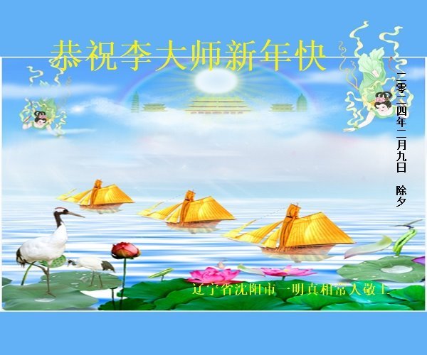 辽宁省沈阳市一明真相夫妻恭祝李大师新年快乐,期盼李大师早日回国! 四川省成都北门一大法弟子儿子恭祝李大师新年快乐!