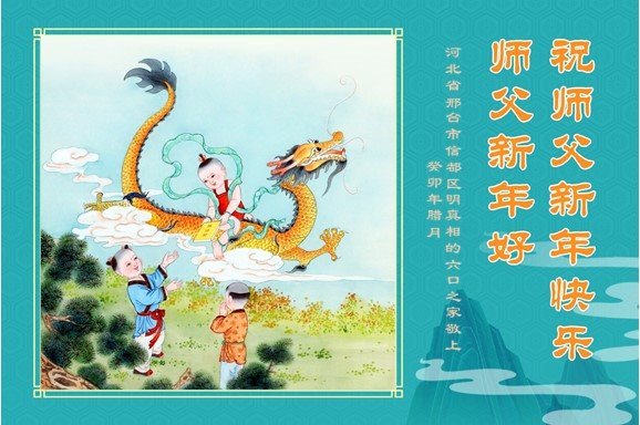 恭祝慈悲伟大的师父新年快乐! 师父辛苦了!无尽感恩! 广东恩平市一大法弟子及明真相的一家人敬上 四川省成都市彭州市大法弟子明白真相的孙女恭祝师父过年好!