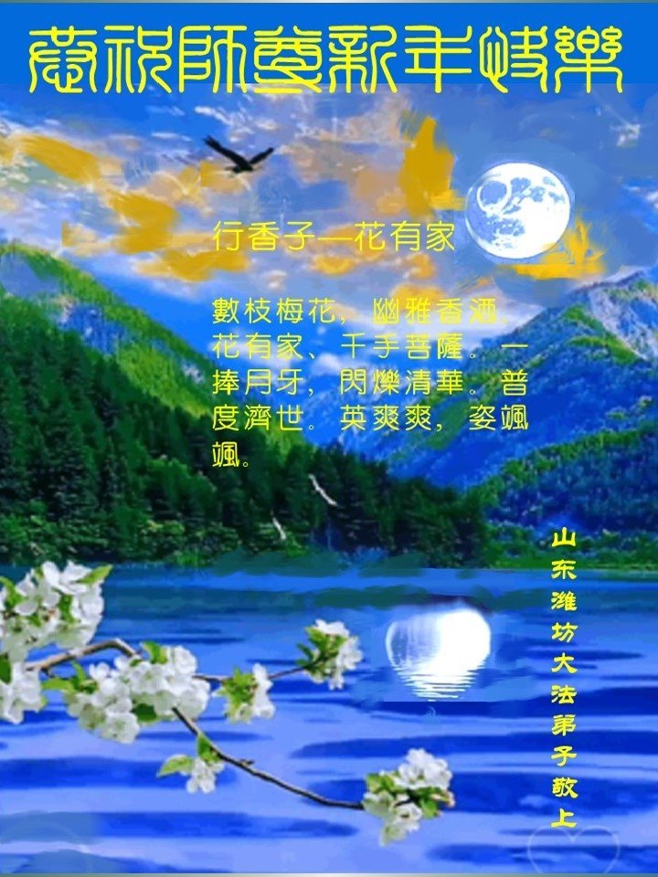 我们的千言万语也表达不了对您的感恩,因而不说多了,望您在百忙之中放心,我们定牢记您的教导,多学法,修好自己,多救人,圆满随师还! 山东省潍坊市昌邑市全体大法弟子恭祝师尊新年快乐!