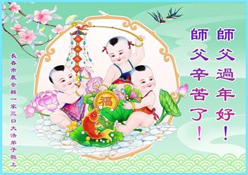 吉林省长春市农安县一家三口大法弟子恭祝师尊过年好!