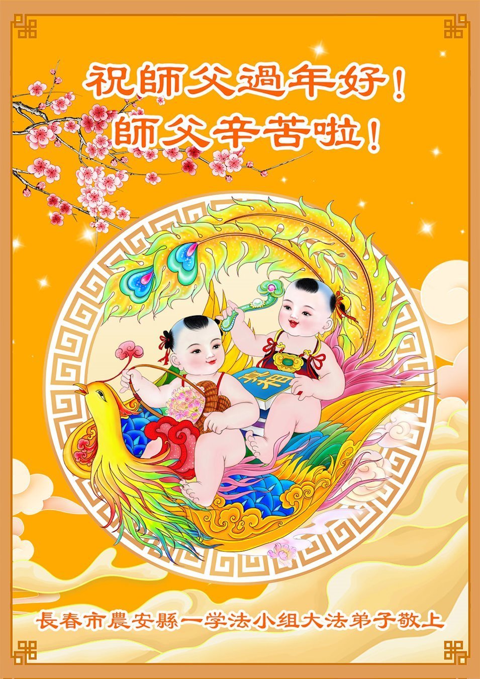 我们怀着无比感激的心情,向慈悲伟大的师尊拜个年,恭祝师父过年好!师父您辛苦了! 在新的一年里,我们要学好法,比学比修,共同精進,相互配合,完成好救度众生的历史使命,携手跟师父回家。 长春市农安县大法弟子敬上 二零二四年二月四日 吉林省长春市一学法小组大法弟子恭祝师父新年快乐!