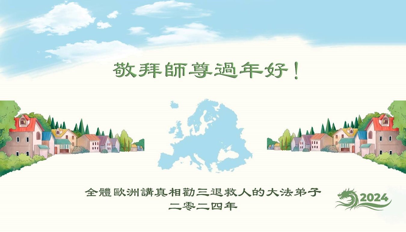 全体欧洲讲真相劝三:退.救人的大法弟子敬拜师尊过年好!