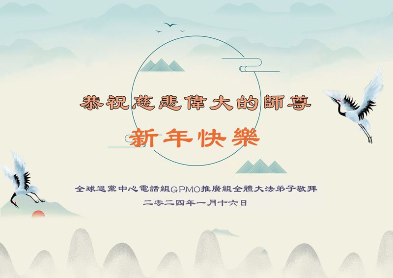 全球.退:党!中心电话组GPMO推广组全体大法弟子恭祝师尊新年快乐!